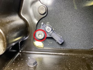 拆下并弃用将左侧 B 柱碰撞传感器固定到车辆上的螺栓,然后从车上拆下传感器。