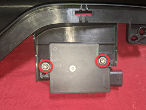 拆下用于将前部低功耗蓝牙 (BLE) 模块固定到前饰板 T 型标志支架上的螺钉(2 个),然后将模块从总成上拆下。