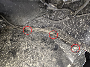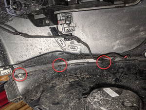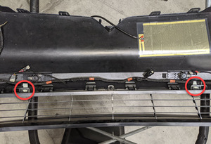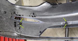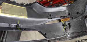 拆下用于将左右侧下部裙板固定到前饰板总成上的螺栓(2 个)和推拉式夹(4 个)。