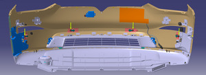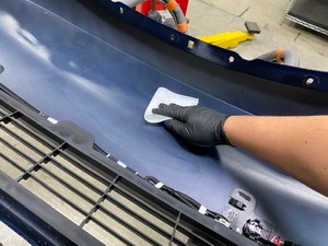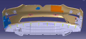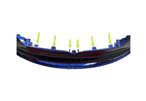 将下部裙板安装到前饰板总成上,然后紧固用于将裙板固定到总成上的锁片(10 个)。