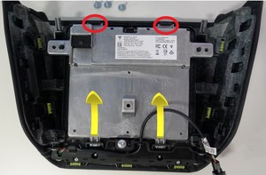- 将中控台手机托盘总成放入车中,连接电气连接器(3 个),固定连接器锁,然后固定将线束连接到中控台的卡子。