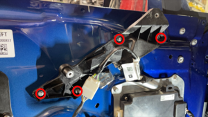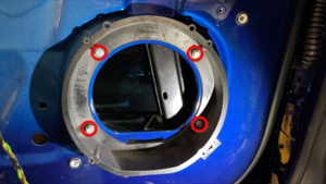 拆下用于紧固左前车门扬声器适配器环的螺栓(4 个)。