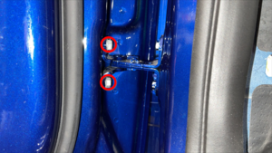 安装用于将左前车门下铰链固定到左前车门上的螺栓(2 个)。