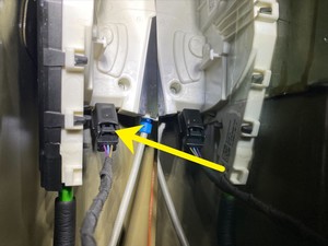 - 连接左前车门模块电气连接器(3 个),然后紧固卡子。