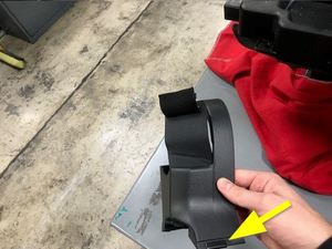 - 松开用于将右侧第二排 EZ 便利进出微型开关支架固定到座椅总成上的夹子,然后将支架从座椅总成上拆下。
