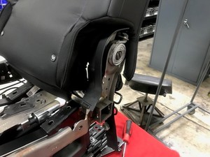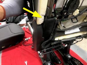 注移动线束和拉紧板翻盖,使其通过座椅靠背骨架。