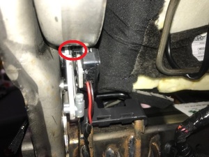 拆下用于将右侧第二排 EZ 便利进出微型开关支架固定到座椅骨架上的螺钉。