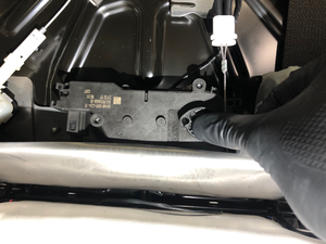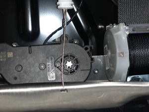 - 断开左侧第三排座椅连接器(2 个),然后通过座椅罩下部重新布置连接器