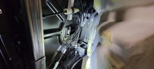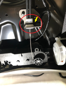 将左侧第三排座椅传动装置滚轮放置在车辆上,然后将座椅靠背调节传动装置线缆连接到滚轮上