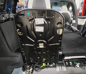 - 断开左侧第三排座椅连接器(2 个),然后通过座椅罩重新布置连接器