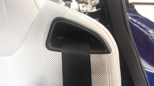 - 将左侧第二排座椅安全带穿过左侧第二排安全带孔罩,将孔罩的顶部部分压入座椅靠背,然后固定连接孔罩与座椅靠背的卡子(2 个)