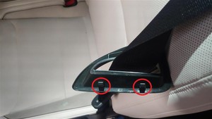 松开将左侧第二排座椅安全带孔罩固定到座椅靠背的卡子(2 个),然后从座椅靠背上拆下孔罩