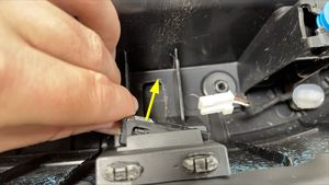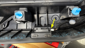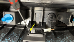- 将左前车门地面照明灯透镜从车门饰板上撬开以松开卡子(3 个),然后将透镜从饰板上拆下。