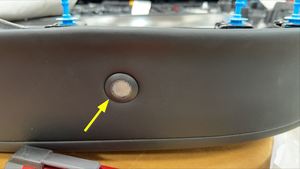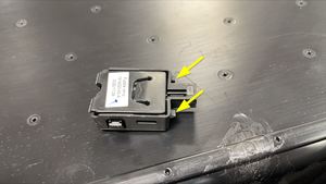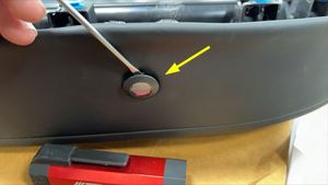 - 将左前车门地面照明灯透镜放到车门饰板上,然后将透镜按入饰板中以固定卡子(3 个)。