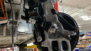 将左侧前半轴安装到前驱动单元中,然后将半轴用力压入驱动单元,使半轴完全就位。
