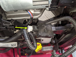 - 松开将驾驶位座椅线束固定到右侧座椅滑轨的夹子。