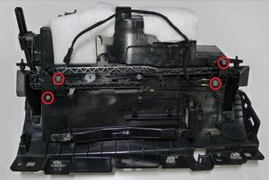 - 拆下副驾位膝部气囊总成。但是,从仪表板上拆下膝部气囊总成后,不要将部件从膝部气囊总成上拆下。请参阅 膝部气囊 - 副驾位(拆卸和更换)。