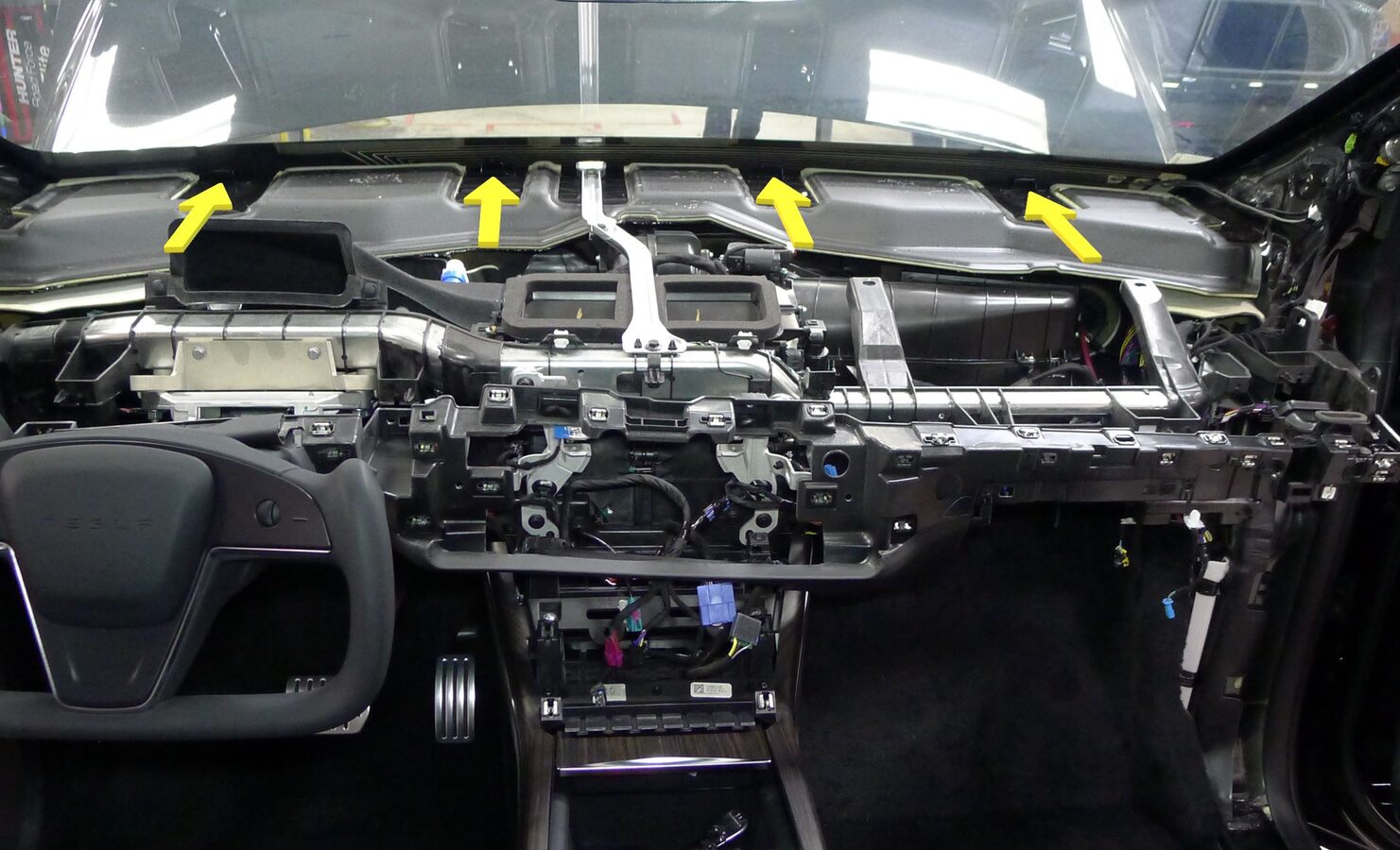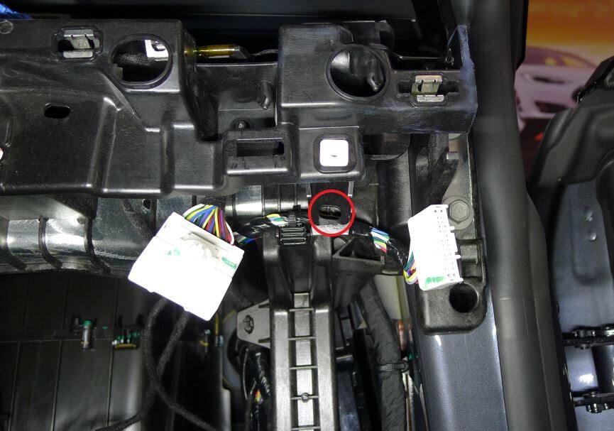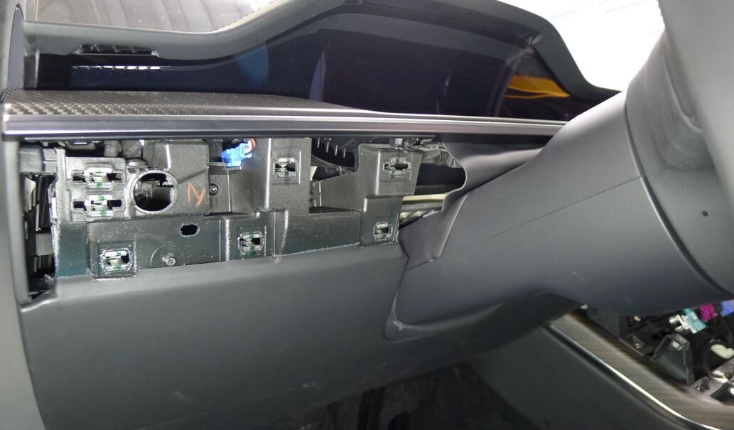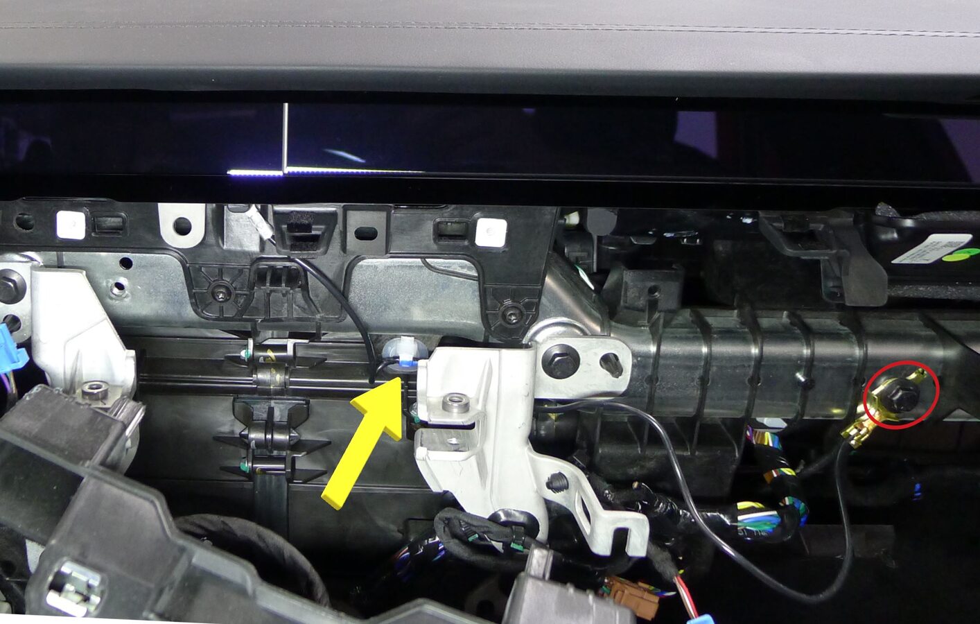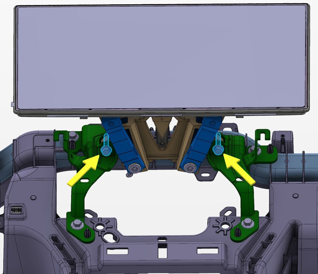 - Route display harness behind LH display bracket
