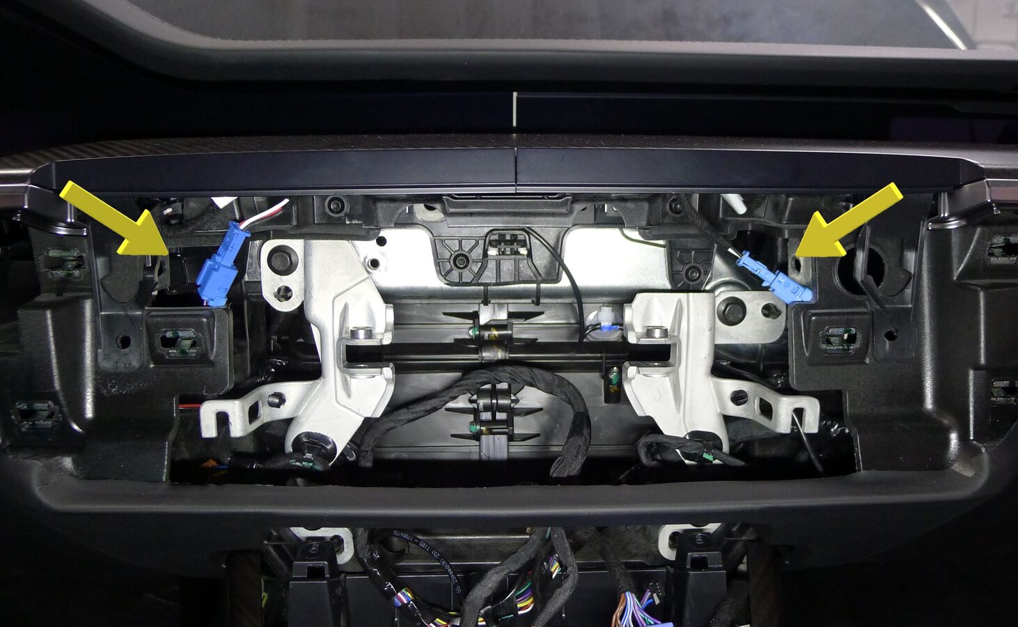 注21x clips, 6x datums, 4x connectors, Release each IP decor connector clip from IP carrier then disconnect from IP harness