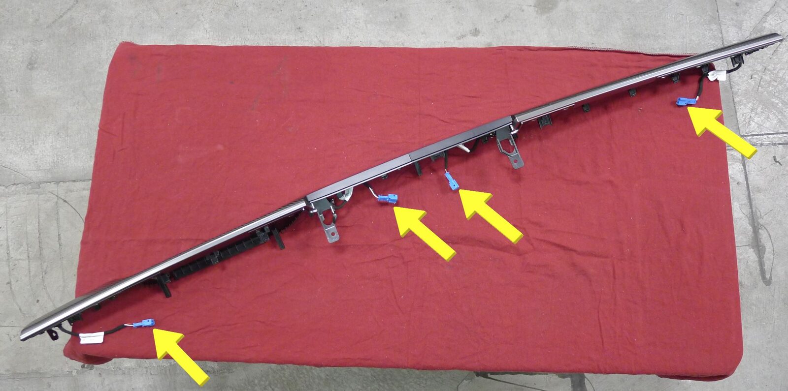 注21x clips, 6x datums, 4x connectors, Connect ambient bright harness, Secure each IP decor connector clip to IP carrier, Secure IP decor to lower instrument panel