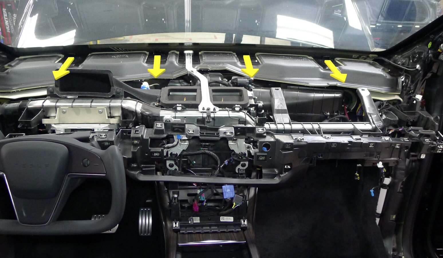 注3x connectors, Route harness through glove box datums