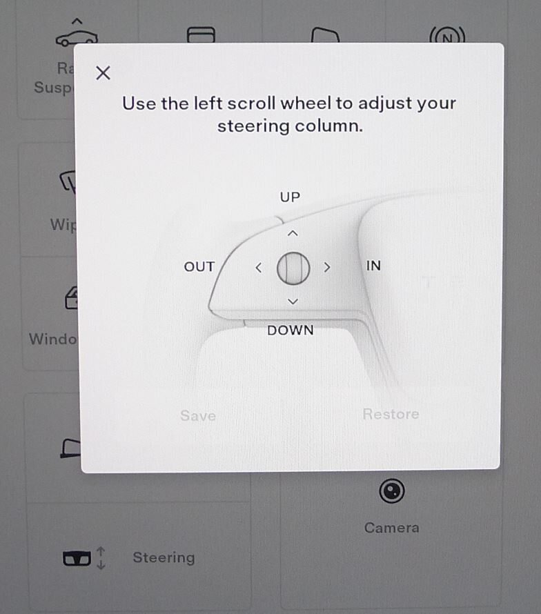 注Via UI > Controls > Steering , Use left steering wheel scroll wheel to adjust steering column