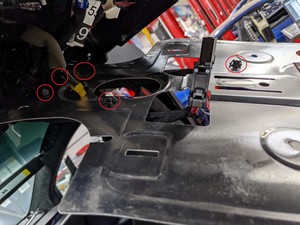 - 松开闭合板上的夹子 (x5),然后从车上拆下闭合板。