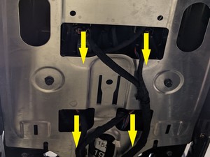 断开 LH 和 RH EM 控制器连接器 (x4),然后从闭合板上松开连接器。