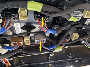 - 安装将线束固定到闭合板的夹子 (x3)。