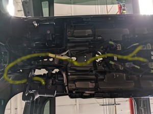 - 断开 LH 后车门电源支柱线束连接器 (x2),松开夹子 (x5),去掉丁基粘贴片,然后从车上拆下支柱线束。