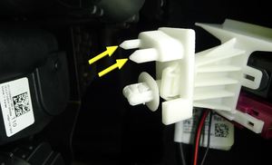 注定位销(2 个)位于暖通空调总成伞形直列连接支架处。