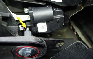 将第二排底板风管执行机构放入车辆中,然后安装将执行机构连接到车辆的螺钉(2 个)。