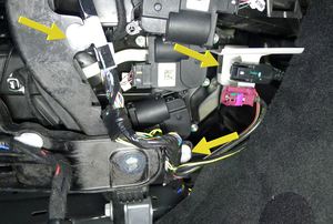 固定将中控台线束连接到仪表板托架和暖通空调总成的卡子(3 个)。