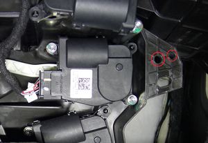 拆下将第二排地板风道传动装置连接到车辆的螺钉(2 个),然后将执行机构从车辆上拆下。