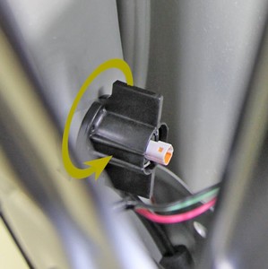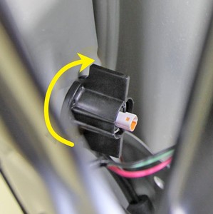 - 连接左侧鹰翼门上安全气囊电气连接器,然后安装好橙色锁片。