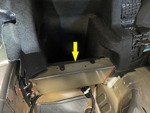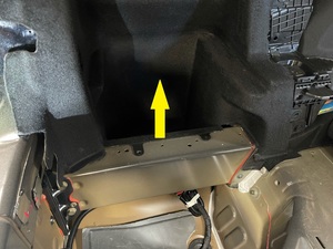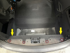 - 拆卸后备箱侧面负重底板。请参阅 后备箱负重底板 - 侧面(拆卸和更换)。