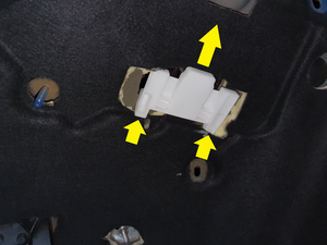 - 向上滑动充电端口电子控制单元 (ECU) 支架以松开锁片(2 个),然后将支架从车辆上拆下。