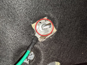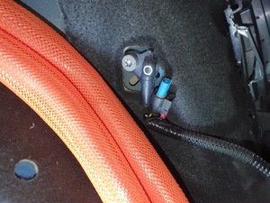 拆下将充电端口线束连接到车身螺柱的螺母。