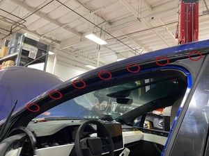 - 将左前上部亮条密封条安装到左前上部亮条上。