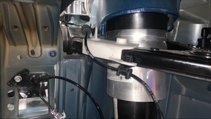 将将左前轮转速传感器支架和线束固定到左前万向节上,然后安装将支架和线束固定到万向节上的螺钉。