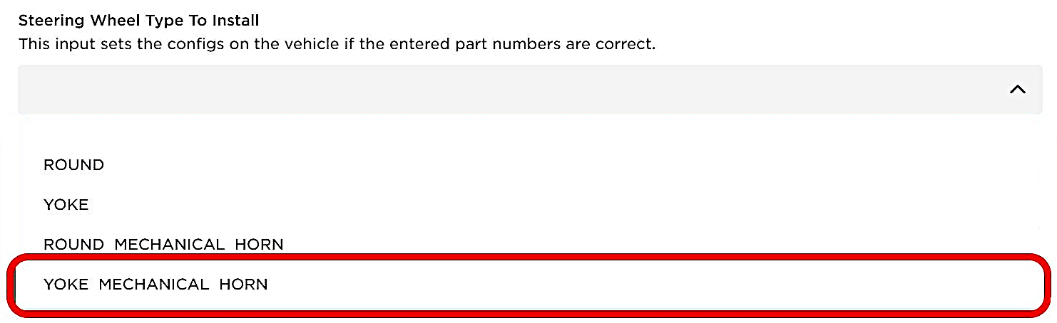 - 如果为带机械喇叭的 yoke 方向盘,请选择YOKE MECHANICAL HORN。