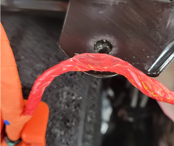 - 确保空调压缩机高压线束的高压互锁回路线束分支正确布线,远离减震塔支架,且并未靠在该支架上。