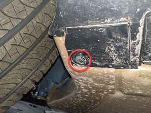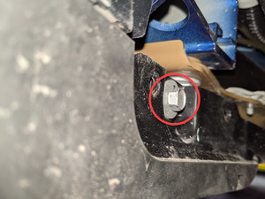3 Nm (2.2 lbs-ft) - 紧固将左门槛板饰条后端固定到左后轮拱内衬的卡子(3 个)。