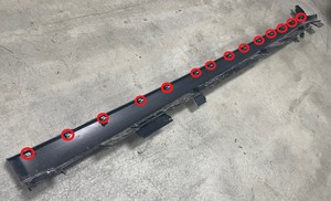 - 将左门槛板饰条安装到车身上,然后紧固将饰板固定到车辆的卡子(14 个)。
