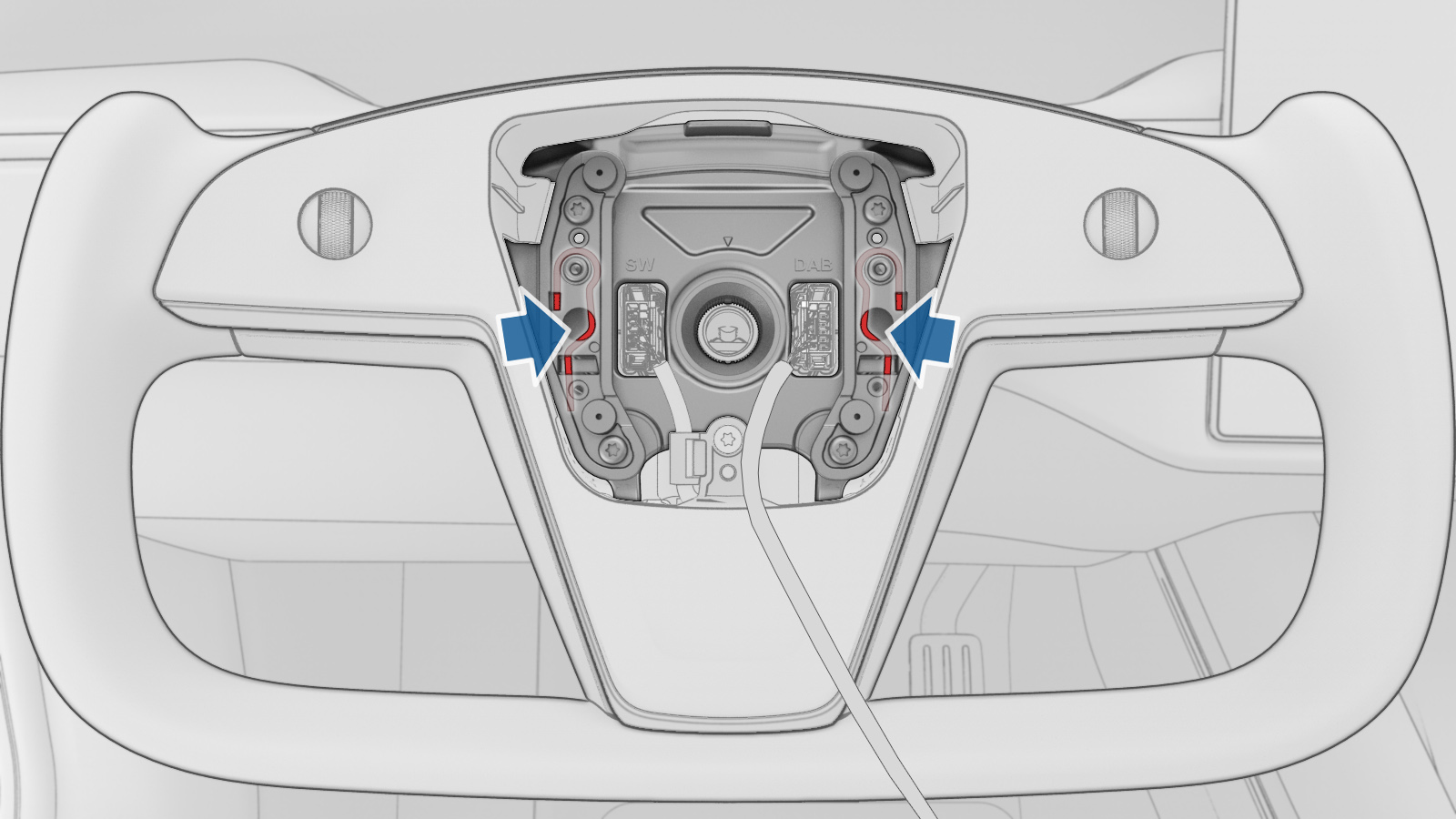 虽然示意图展示的是 yoke 方向盘,但本程序对带 yoke 方向盘和圆形方向盘的车辆均适用。不过,两个版本车辆上的驾驶位安全气囊是不可互换的。