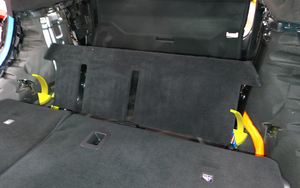 - 将第二排后底板放入车内,将底板向下滑动到座椅后面,然后降低底板的前部以卡入卡子(2 个)。