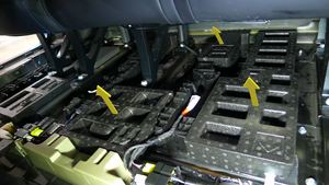- 将第二排左侧后底板支撑(3 个)从车辆上拆下。