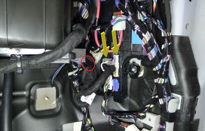在右侧车身控制器上连接暖通空调 (HVAC) 鼓风机连接器 x059 和暖通空调 (HVAC) 外壳连接器 x058。