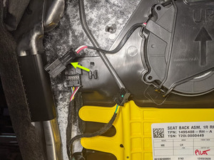 - 连接风扇控制器电气连接器,然后将连接器向下滑动,将其与座椅背悬架固定。