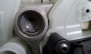 注如果拆卸期间止回阀与铝盖分离,请勿使用金属工具。金属工具可能会刮伤超级歧管外壳,从而导致内部损坏。请用手指或在 90 度长凿上缠绕电工胶带。